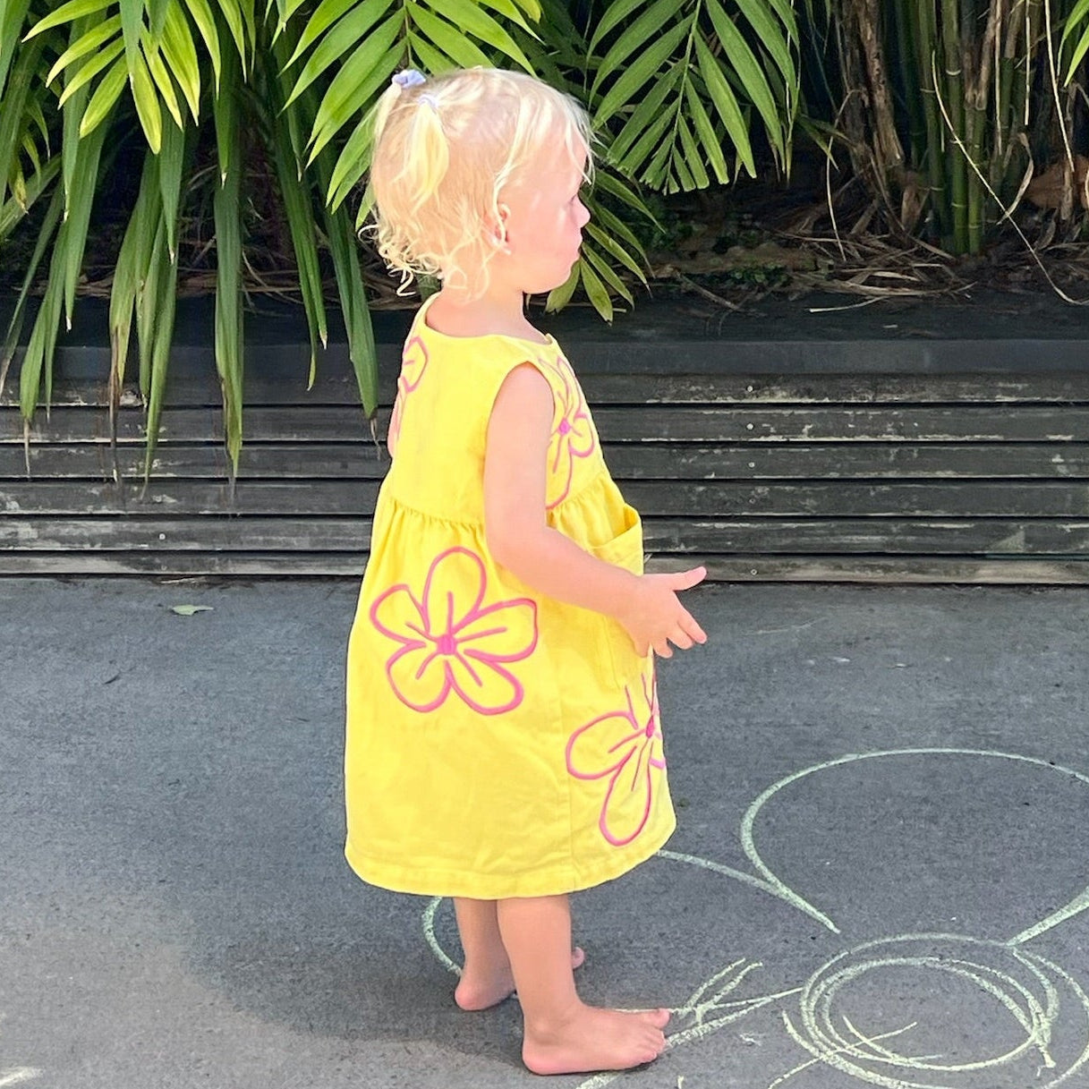 made from 100% soft washed GOTS certified organic cotton, the MARSIE denim dress is a loose fitting vintage style button up dress with subtle front and back pleating, and a cute little pocket for your little ones to store their goodies